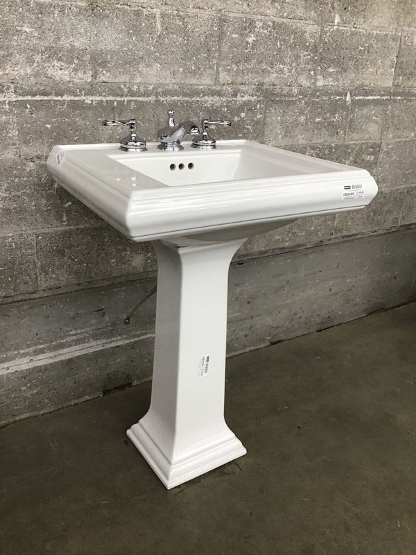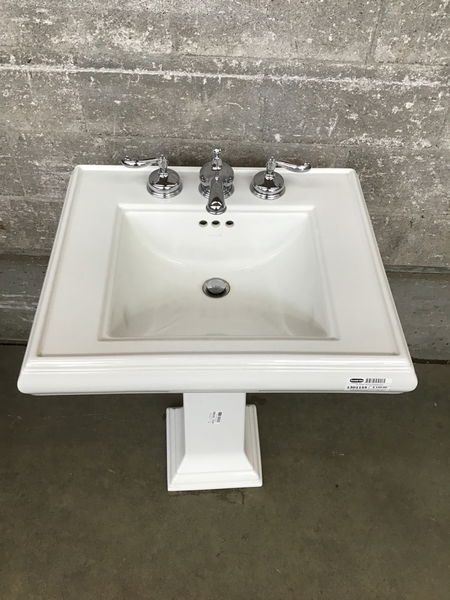Ca. 2006 Kohler "Memoirs" white porcelain pedestal sink. This unit is now running north of $500 at HD or Lowe's--and you don't get a faucet with it!