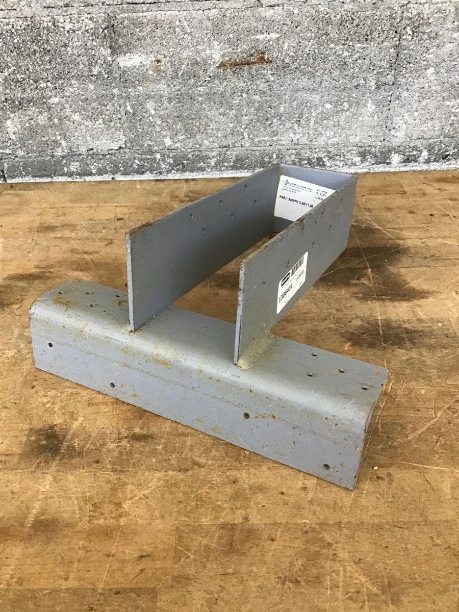 Simpson like heavy beam hanger with a 3 1/2" wide x 12 1/4" deep "saddle" to receive. Made by Bowman-Morton of Seattle in 2024 according to label.
