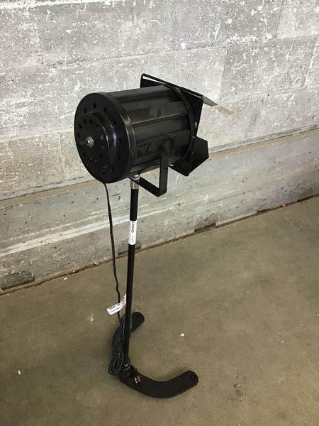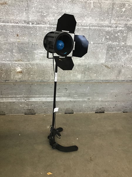Smaller fixed height freestanding studio light with a sturdy base. This cutie is ready to illuminate your stage or living room. Includes a blue tone photographic bulb.