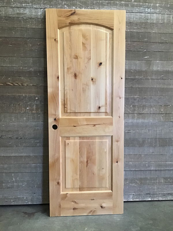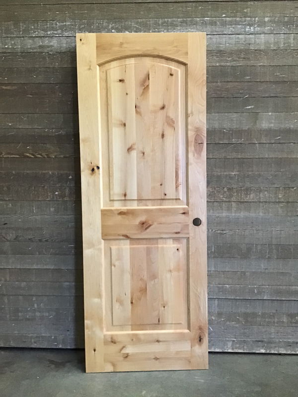 Previously installed Two Panel Knotty Alder Door. Has scratches, likely from a Chihuahua. Could easily be cleaned up. Price reflects condition.