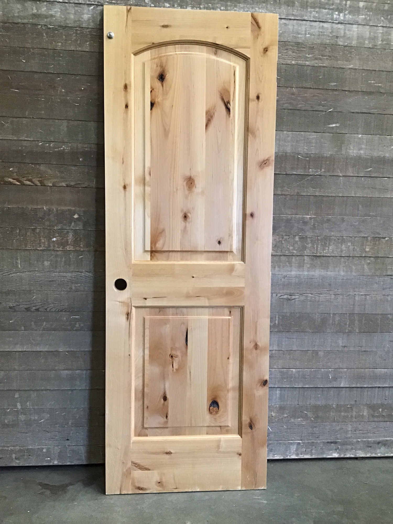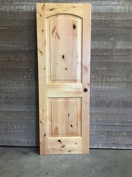 Previously installed Two Panel Knotty Alder Door. Price reflects condition.