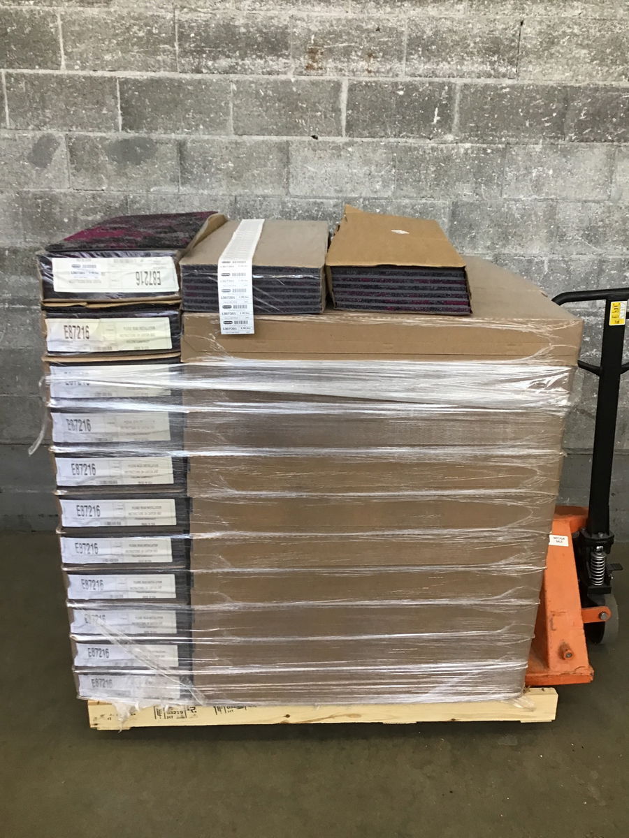 This is a box of rectangular carpet tile with a color scheme that is quite similar to the color scheme of a massive mobile phone company. I'll let you guess. Each box contains 14 tiles at 42SF per box. This is a bulk item. No holds please.