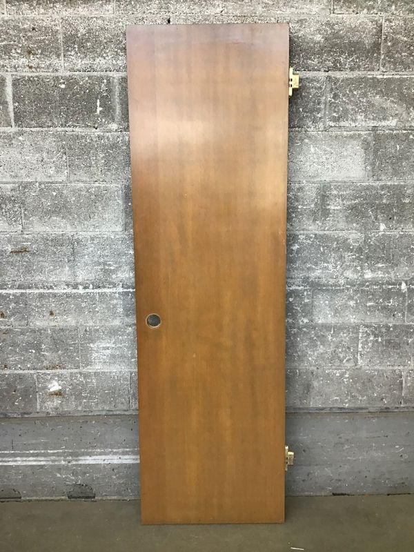 Flush face, darkish stained fir veneer hollow core door. This one has concealed hinges, which I left in the door. There are some scratches on both sides of this one.