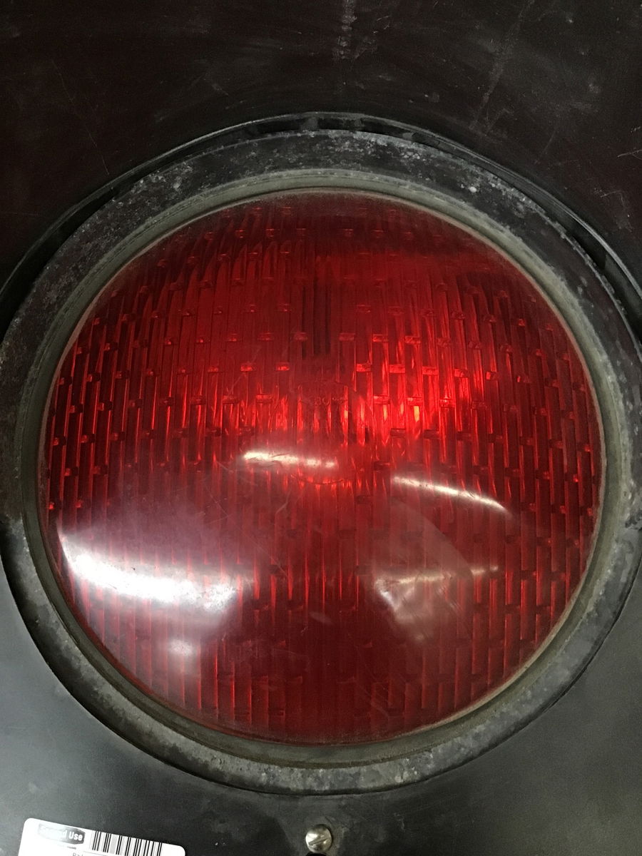 From SafeTran, a giant railroad crossing/ stop light. Sold untested, but in excellent condition, but wiring looks great, everything latches shut nicely. Light itself is 16" wide, is 21" including the outer trim.