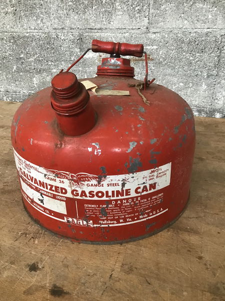 Vintage Eagle brand galvanized gas can. Painted red and comes with handle. Paint has a weathered patina.