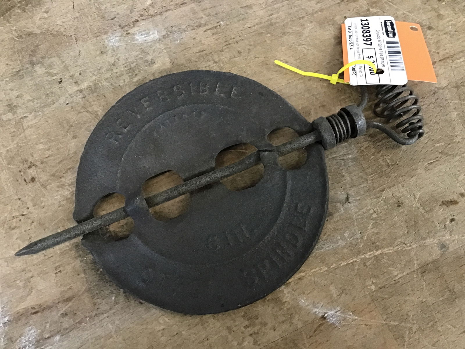 Vintage cast iron stove pipe damper for 6" pipe. Marked "Griswold, New American"