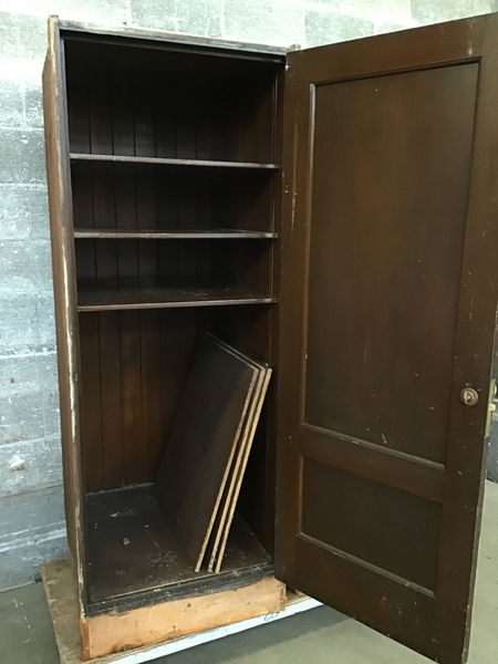 This is a fantastic vintage school cabinet that was salvaged from a west Seattle grade school. Made from solid CVG fir, this cabinet features a true paneled door with an actual door handle as it's door, as well as extra deep storage inside. Comes with 7 solid fir shelves.