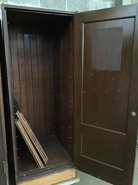 This is a fantastic vintage school cabinet that was salvaged a West Seattle grade school. Made from solid CVG fir, this cabinet features a true paneled door with an actual door handle as it's door, as well as extra deep storage inside. Comes with 7 solid fir shelves.