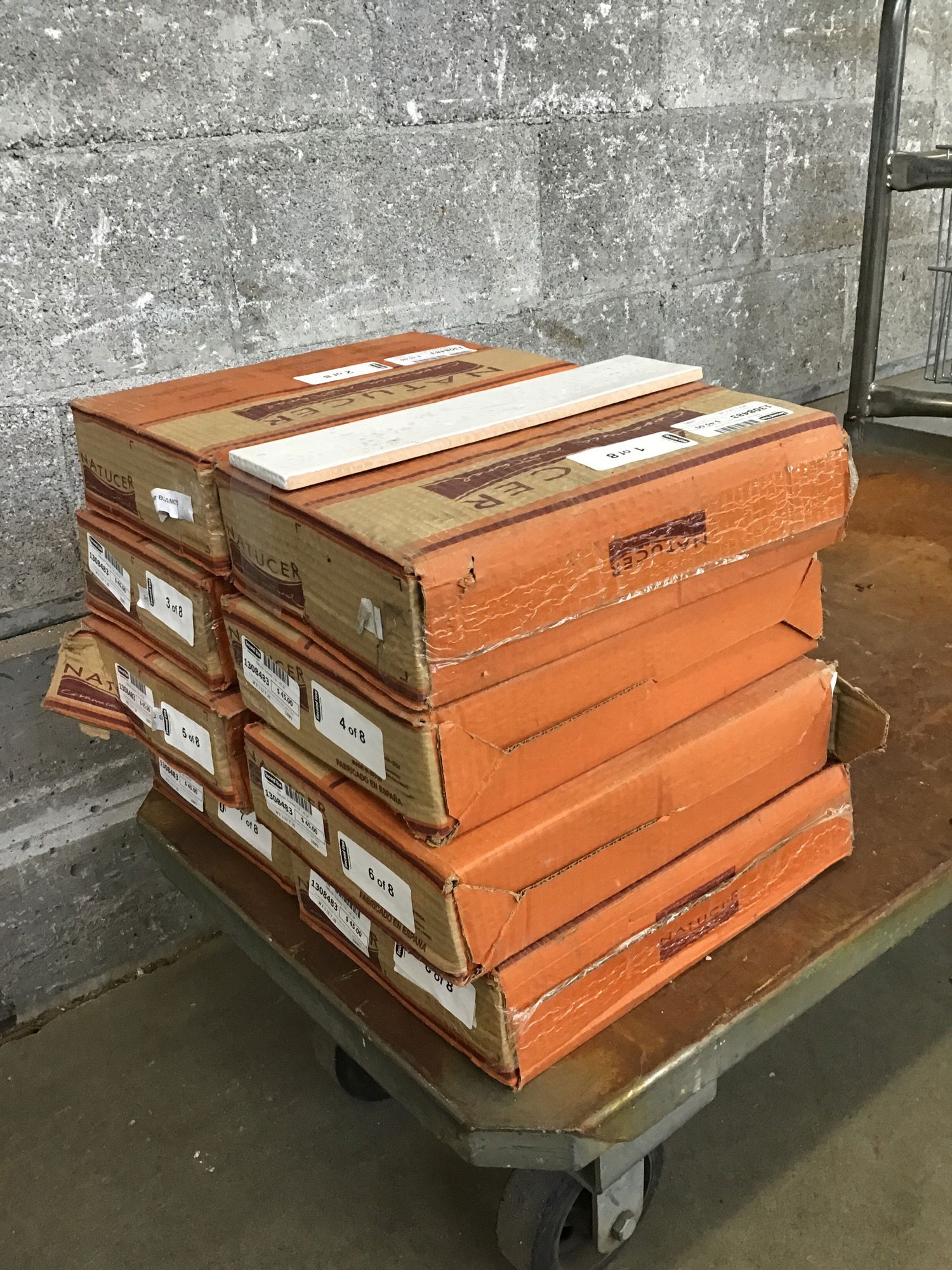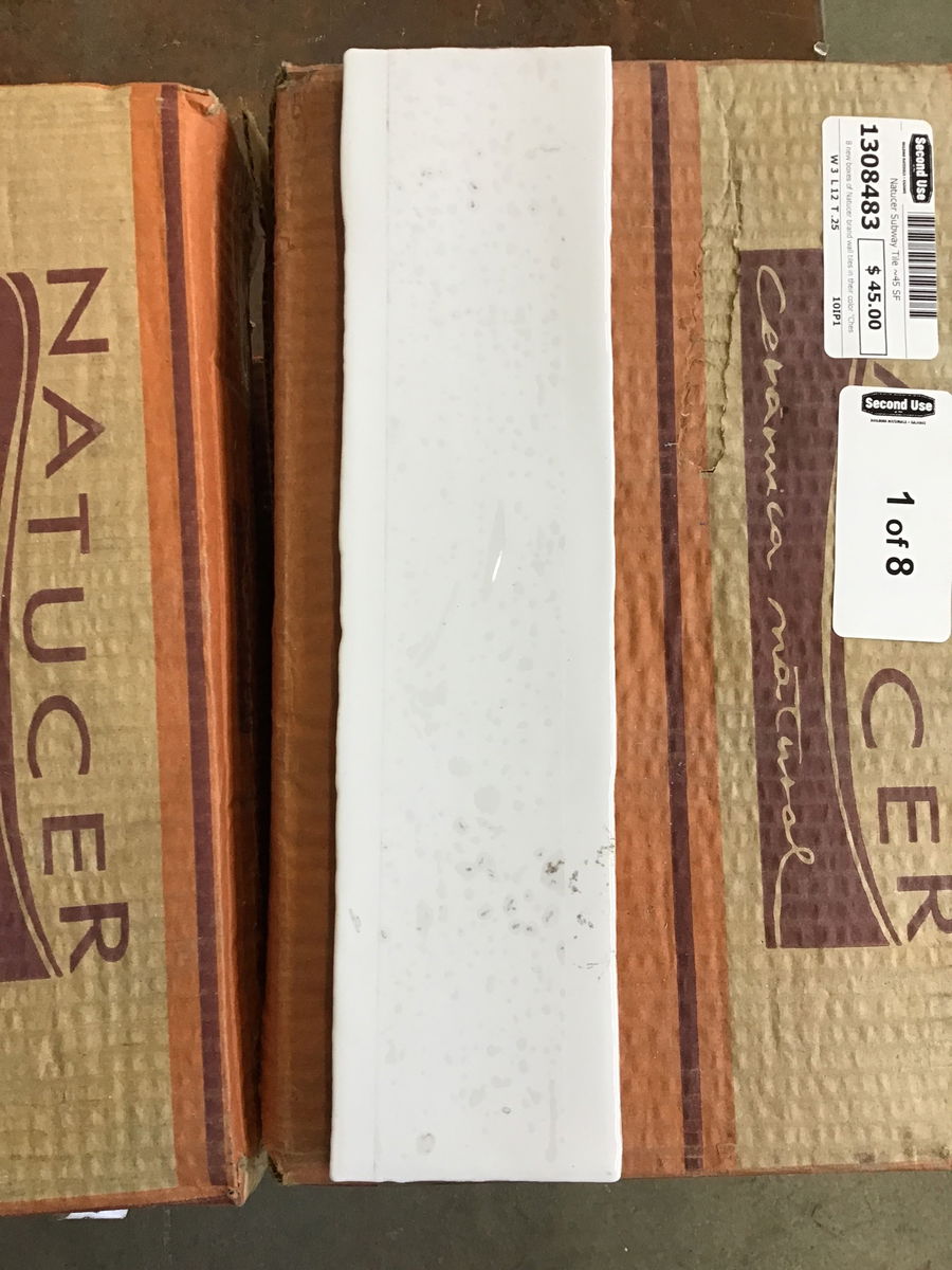 8 new boxes of Natucer brand wall tiles in their color "Chester Bianco." Each box holds 5.72 SF, for a total of ~45 SF. Would be sufficient for a backsplash or other smaller project.