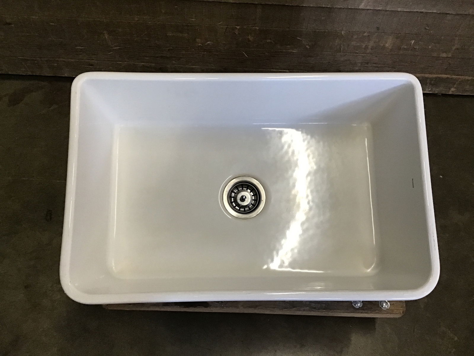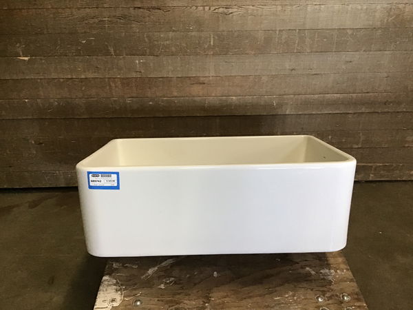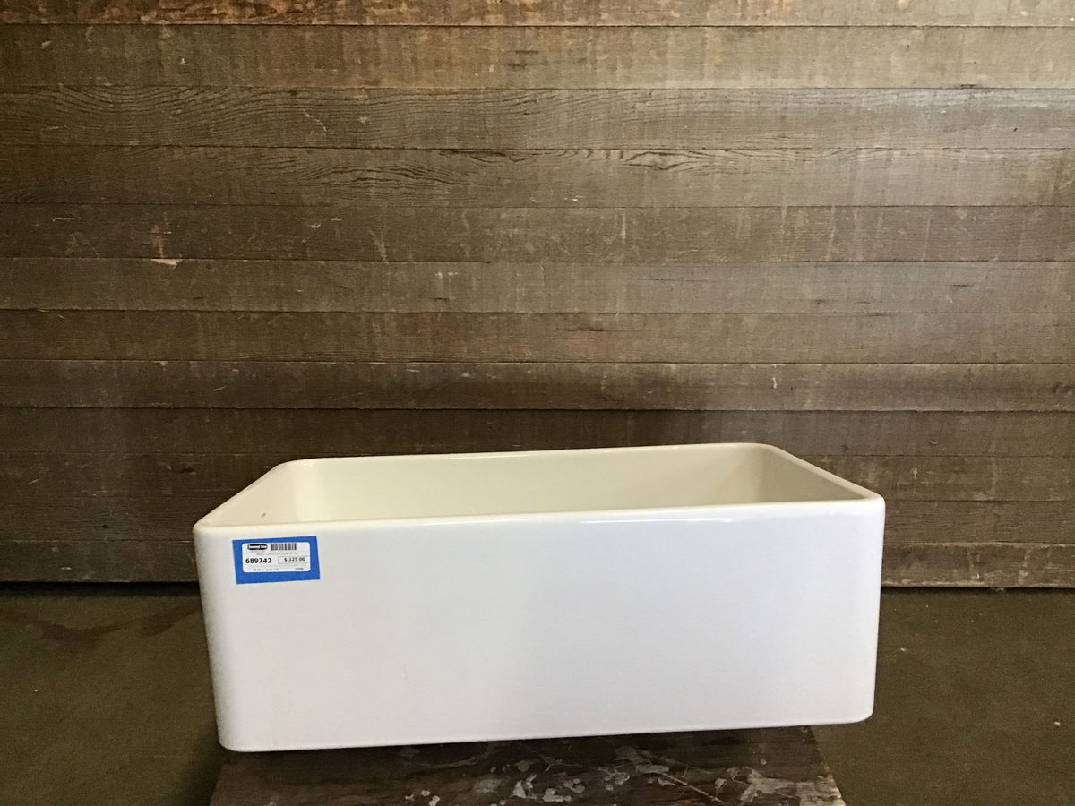 The Blanco Cerana 30" Ceramic Farmhouse Sink has two different corner styles, providing a reversible design. Choose between a more traditional or contemporary corner design(center drain stays in the middle). The Cerana 30" Farmhouse Sink is suitable for kitchens, laundry rooms and mudrooms. This sink was previously installed and price reflects condition.