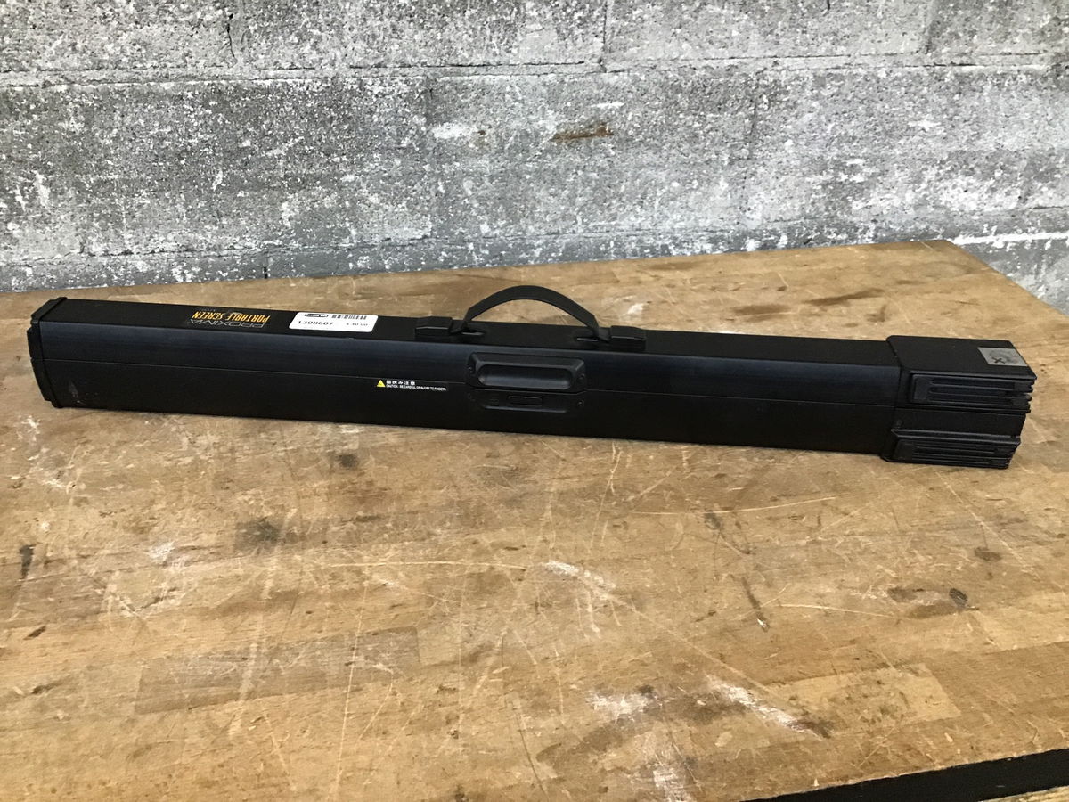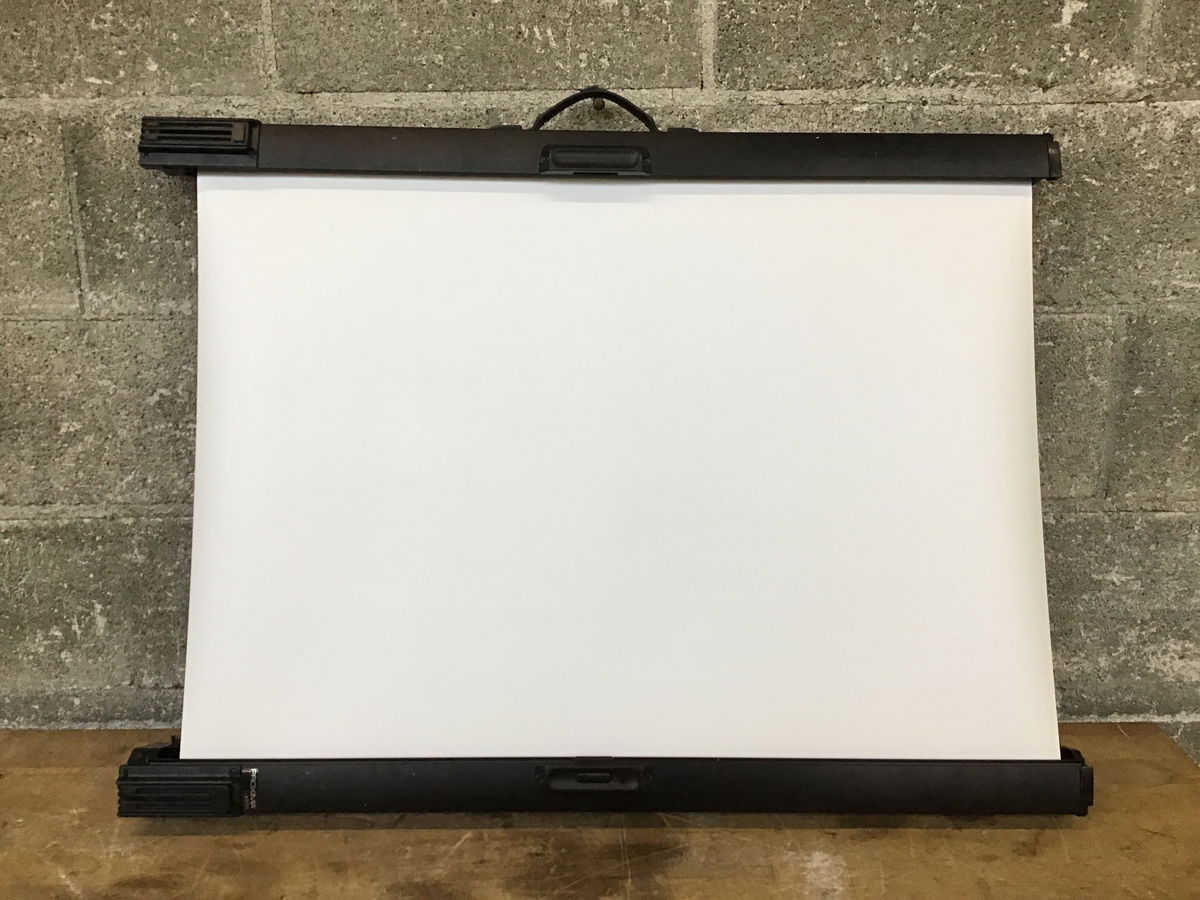 Here we have a fully collapsable and portable projector screen by brand Proxima. Model number A650. Dimensions are taken from the full screen size itself.