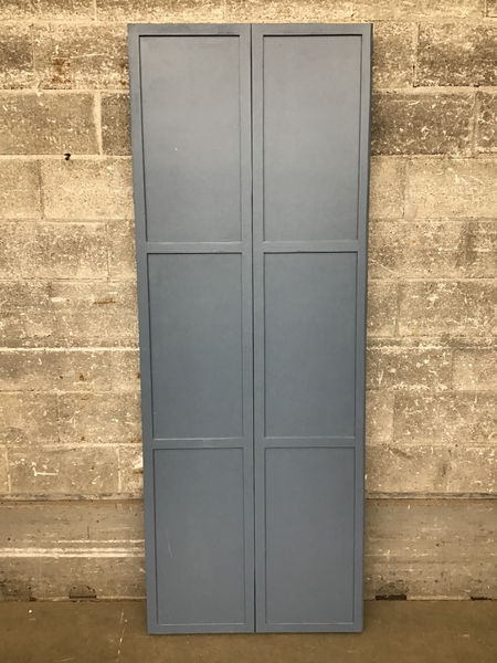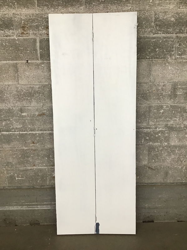 1 3/8" thick, flush face hollow core door that's a little skinnier than the usual 30" bifold, and this one has had some trim added to the face to make it sort of look like a three/six panel.
