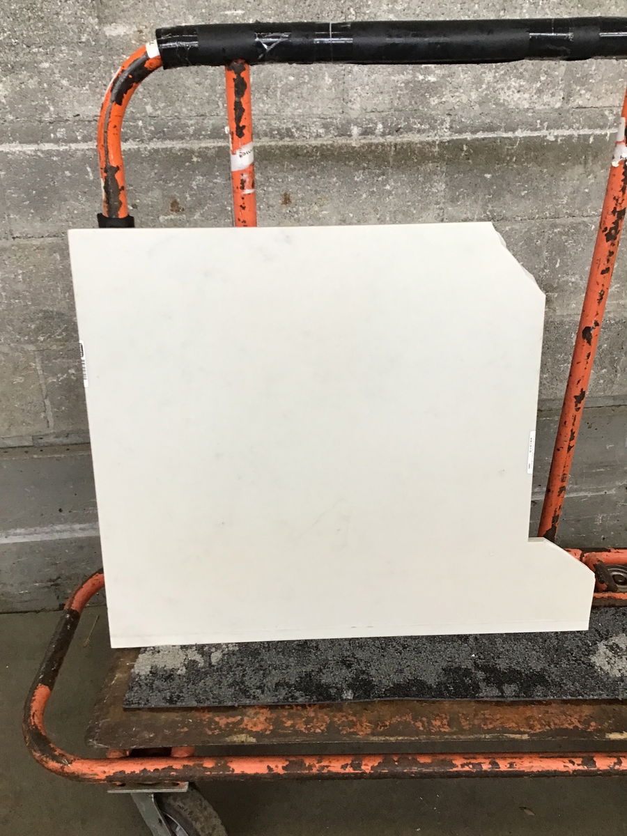 I'm not sure if this is man made stone or real quartz, but it reminds me of quartz. That's why I'm calling it quartz like. This one has a double thickness finished front edge. Length listed is to the angled break on the left.