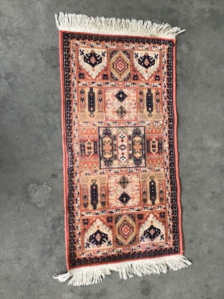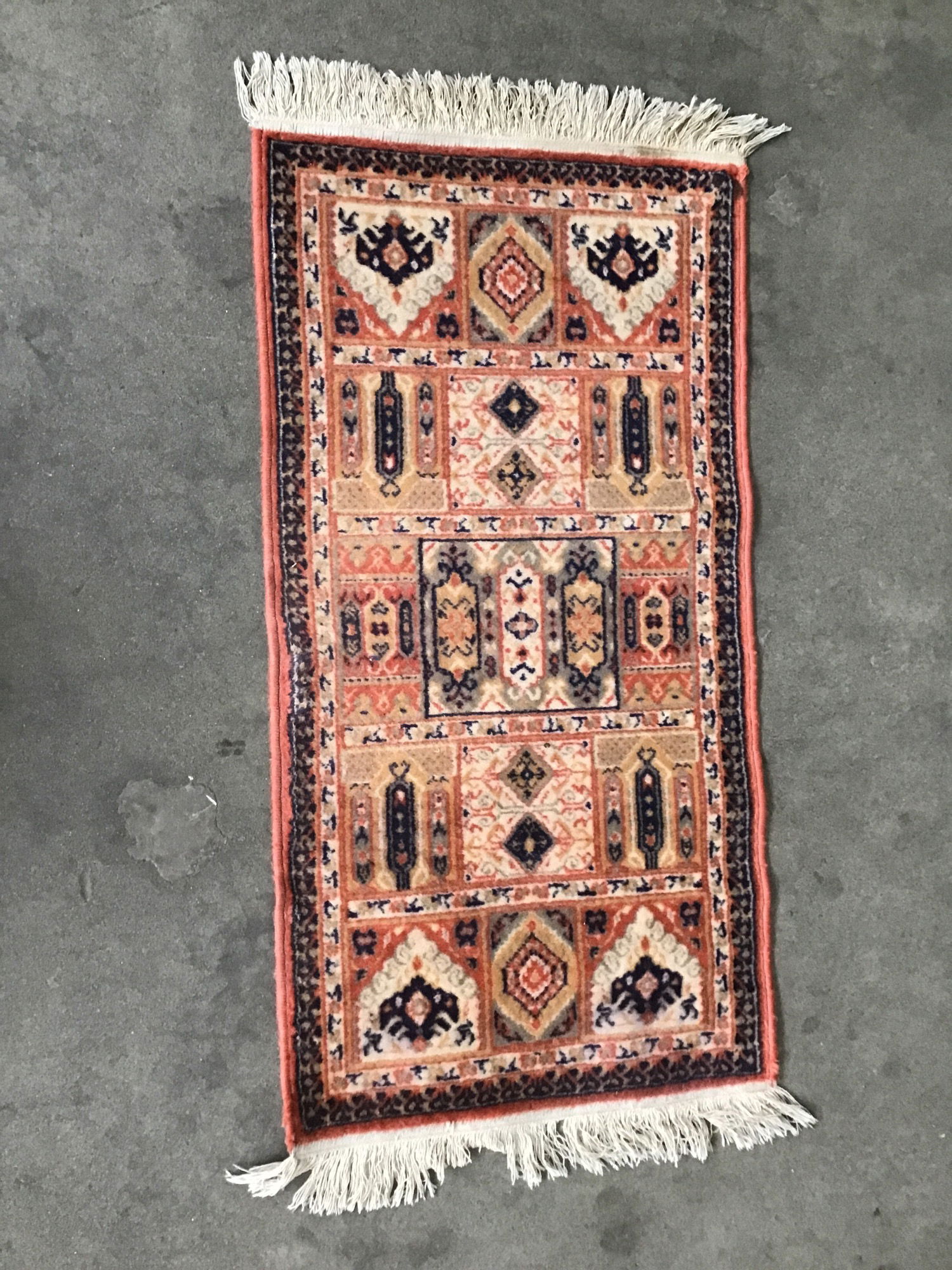 Beautiful 100% wool rug, made in Belgium, with warm colors and a mesmerizing design. Would make a great entryway rug, or for that spot in front of the kitchen sink :-)