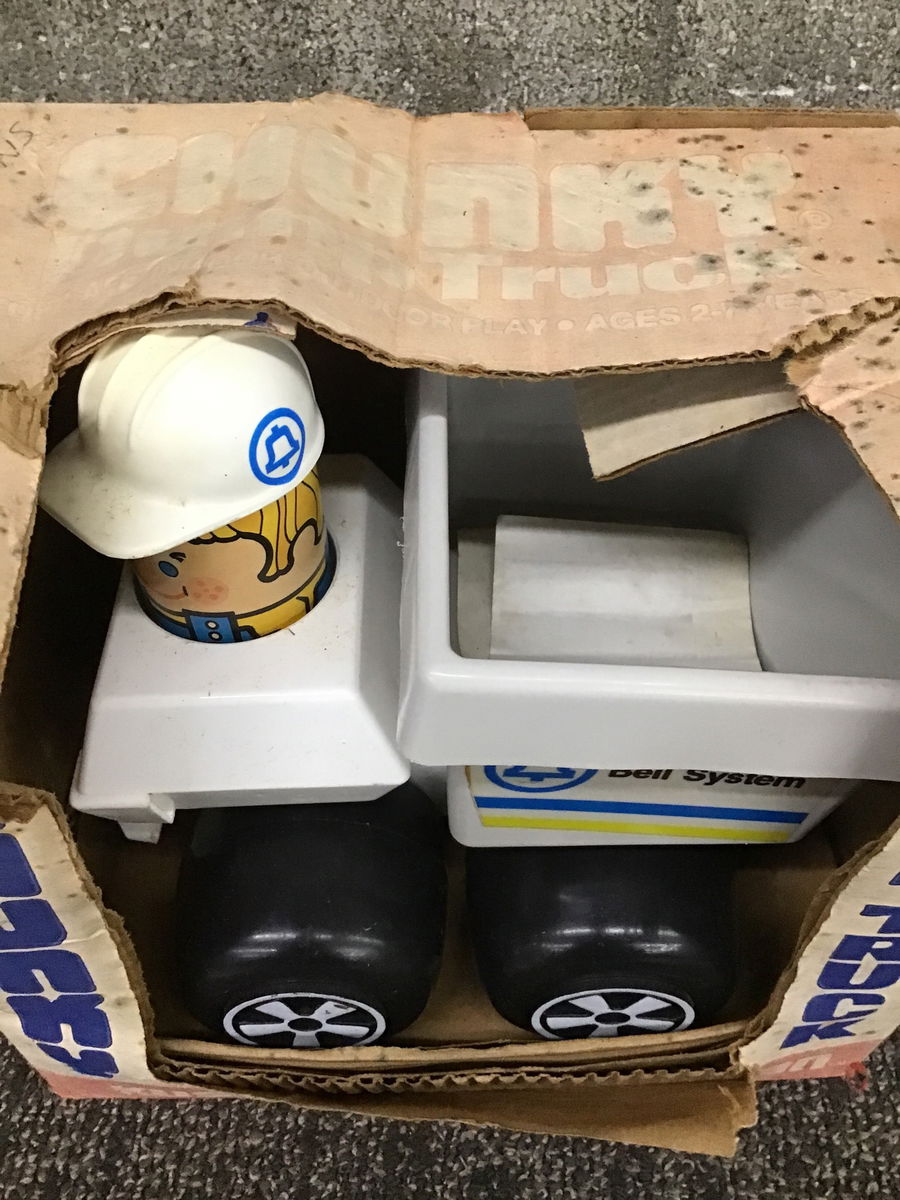 Bell System dump truck with driver made by CHUNKY--probably late 70's or early 80's--that's still in its original box, which has seen some water damage.