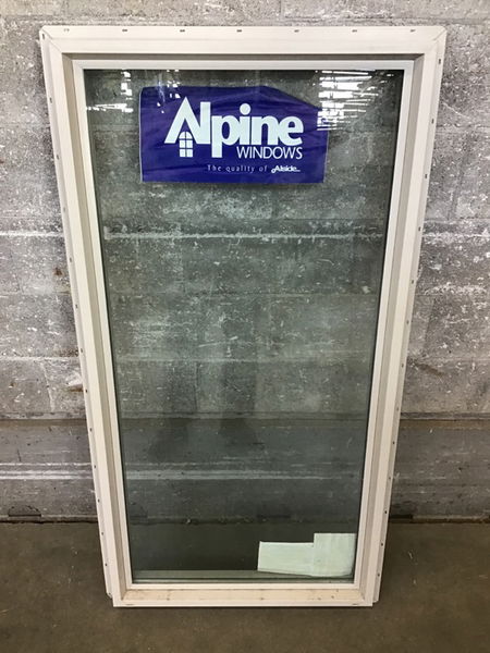Ca. 2015, but never installed, beige vinyl fixed window with energy tag still attached. Item may have cosmetic damage. Photo may be representational.