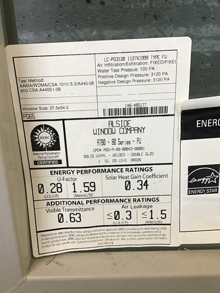 Ca. 2015, but never installed, beige vinyl fixed window with energy tag still attached. Item may have cosmetic damage. Photo may be representational.