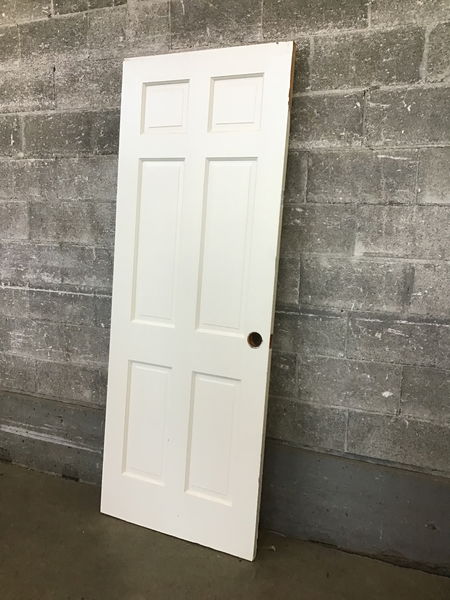 Raised six panel interior door that's been painted, but some of it's peeling off. Will need a fresh coat.