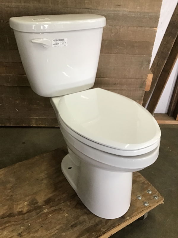 Two-Piece 1.28 GPF Single Flush Elongated ADA Toilet in White with Slow Close Seat. Retails for $322 at Home Depot. In great shape and really clean.