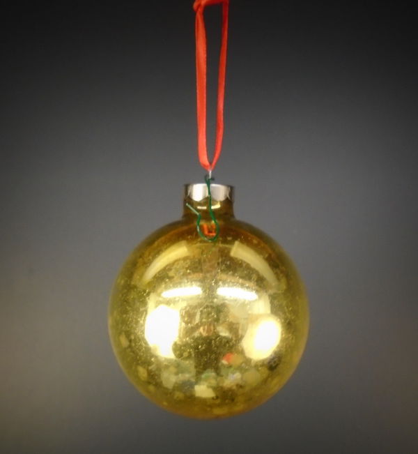 Pre WWII 3" mercury glass Shiny Brite Christmas ornament in yellow.