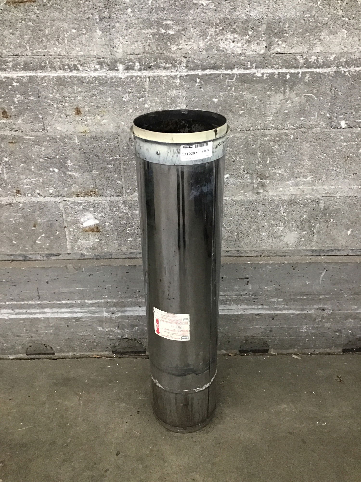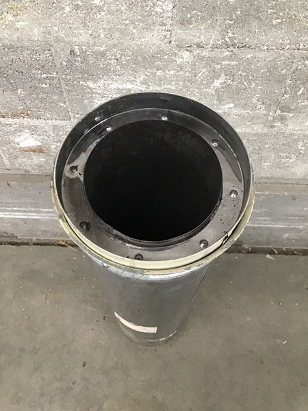 Stainless double wall insulated stove pipe, 6" interior diameter, brand unknown.