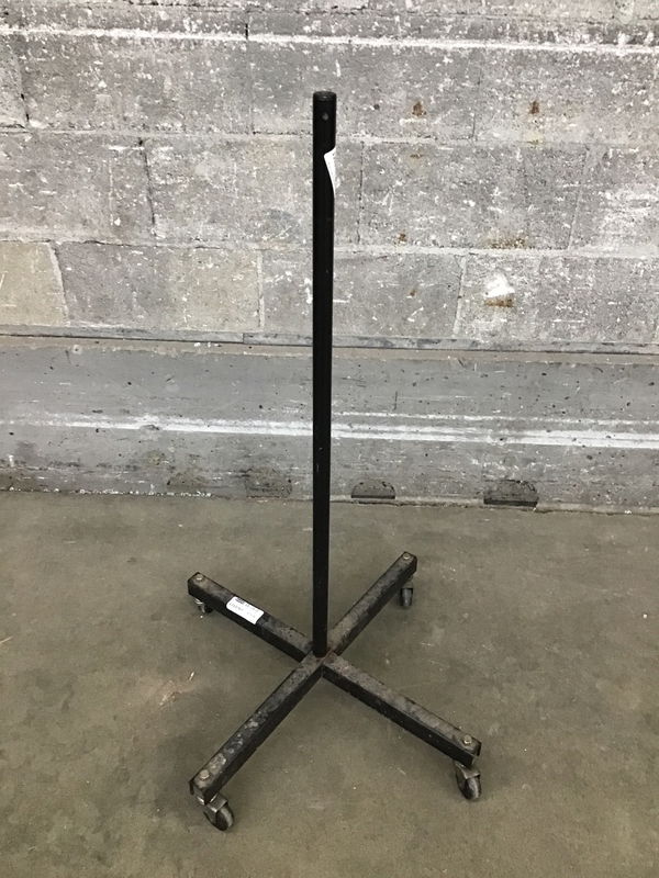 This rolling stand with four casters on the base could hold a light, a mannequin, or ????. Outside of pipe post is 1" diameter. Inside is 1/2" and not threaded.