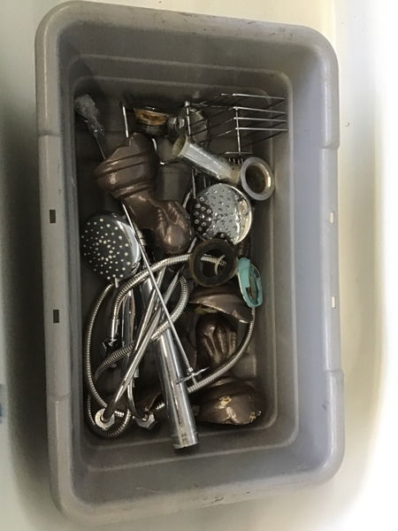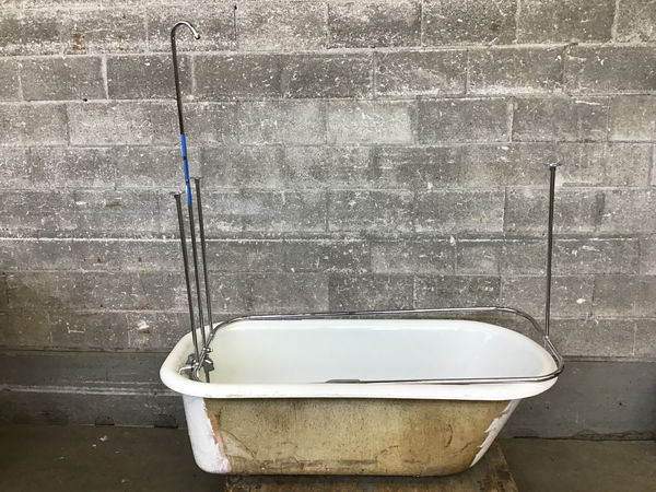 This tub is in good shape with only minimal chips and has its original finish. Comes with original feet, shower ring, and all the assorted shower hardware.