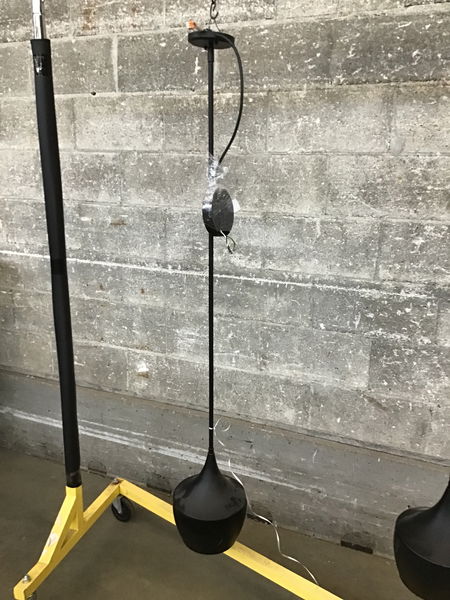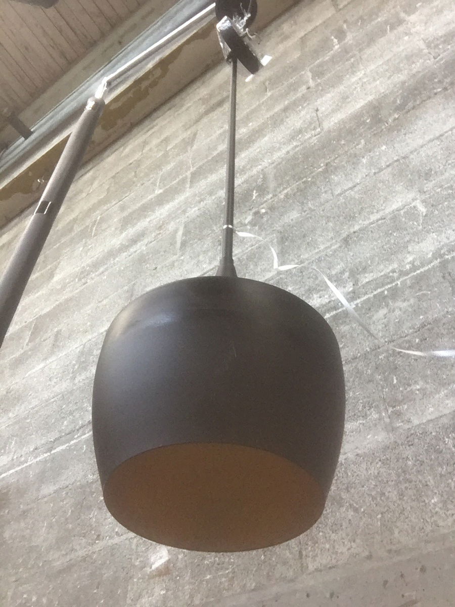 Ca. 2022 Design Classics "Helenna" black pendant light with brass interior that sells for $115 at Destination Lighting.