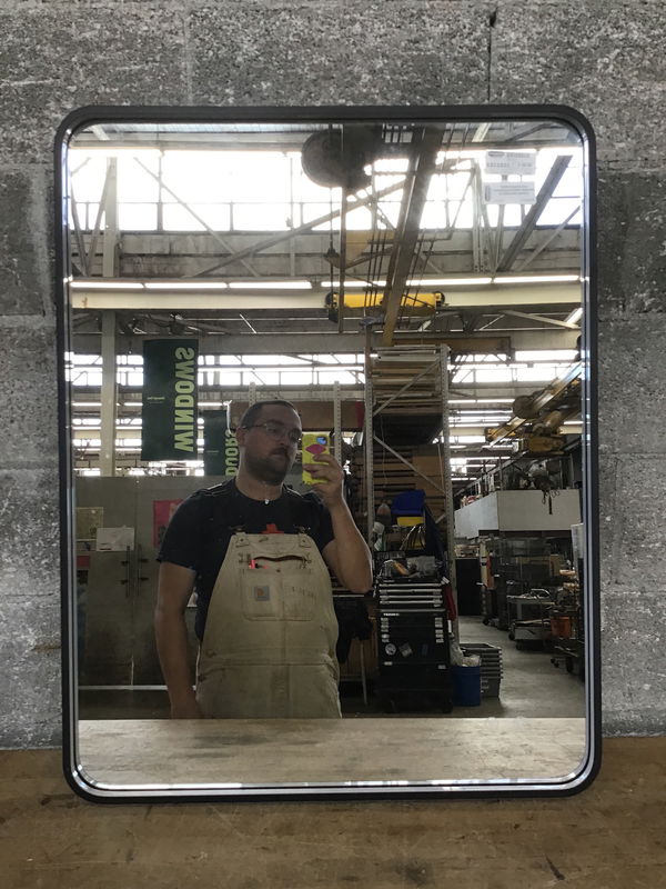 Bathroom mirror with LED lights built into the frame as well as a defogger function.