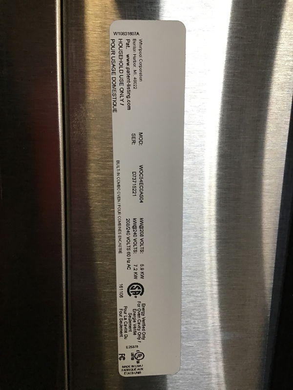 ’17 Whirlpool Wall Oven/Microwave Combo