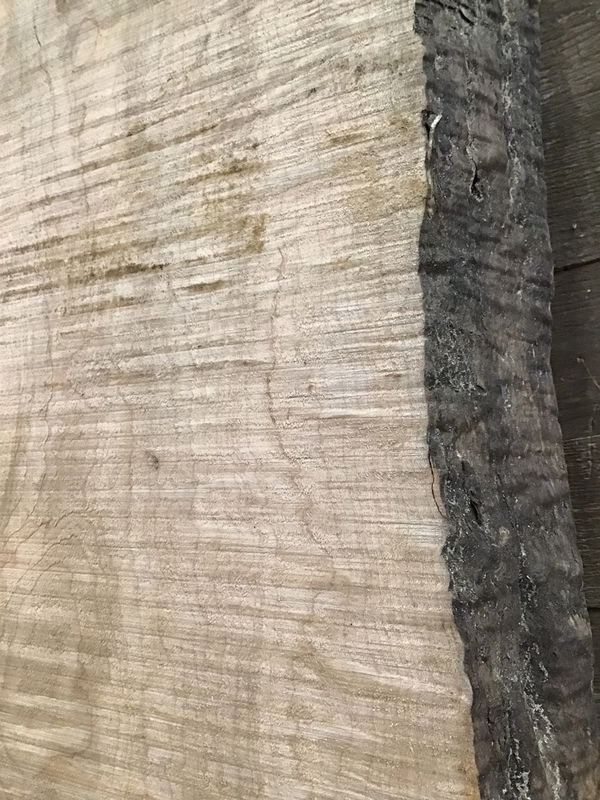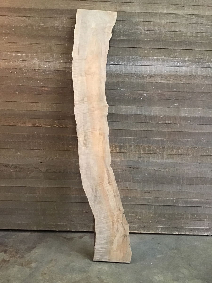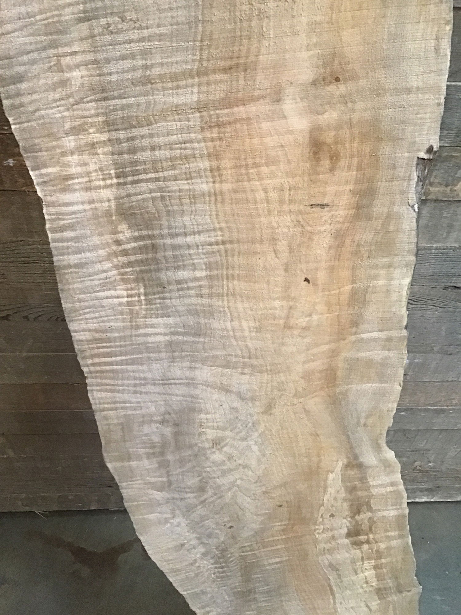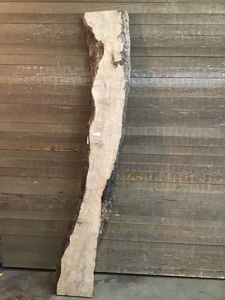 SO MUCH QUILTED FIGURE!!!!!! Locally milled from an heirloom Maple tree in Tukwila that was on the golf course. Has cured in dry storage for over a decade. The tree had been storm damaged too many times over the years and had to be taken down. The whole tree was incredibly figured. At the time it was the oldest Maple in Tukwila. A few large slabs were used to make the dining hall tables at two Tukwila fire stations. Tapers in width from 14" to 12". Pretty darn flat for it's length, bet you'll net out at 2.75" thick once planed.