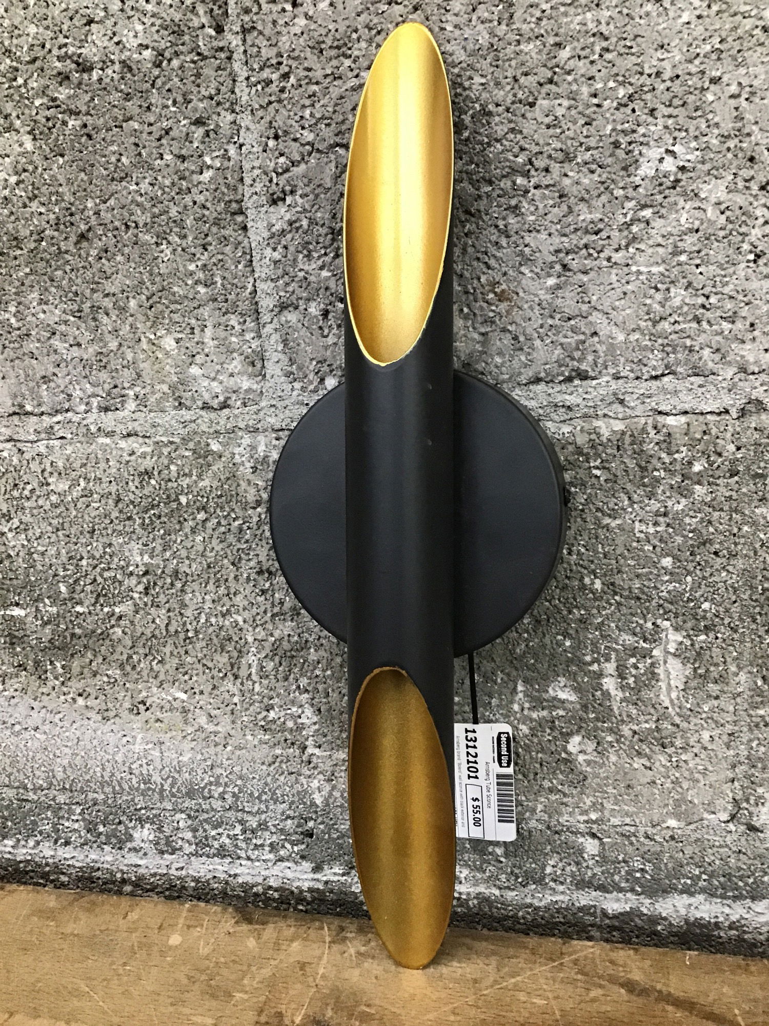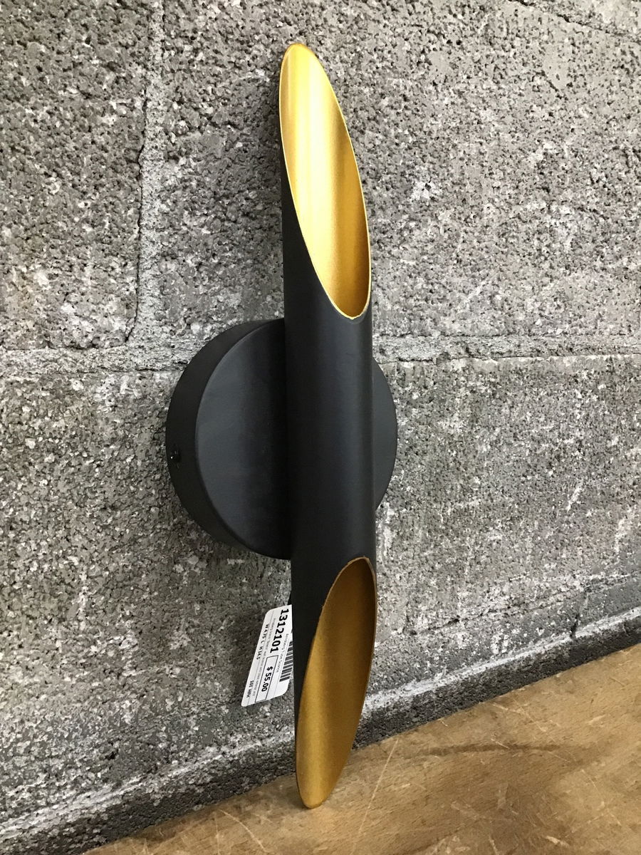 Arnsberg brand "Bolero" wall sconce with black exterior and gilded interior. Features LEDs that are concealed by the angles cut at each end. Retails new for $98.