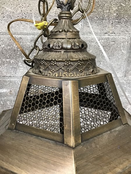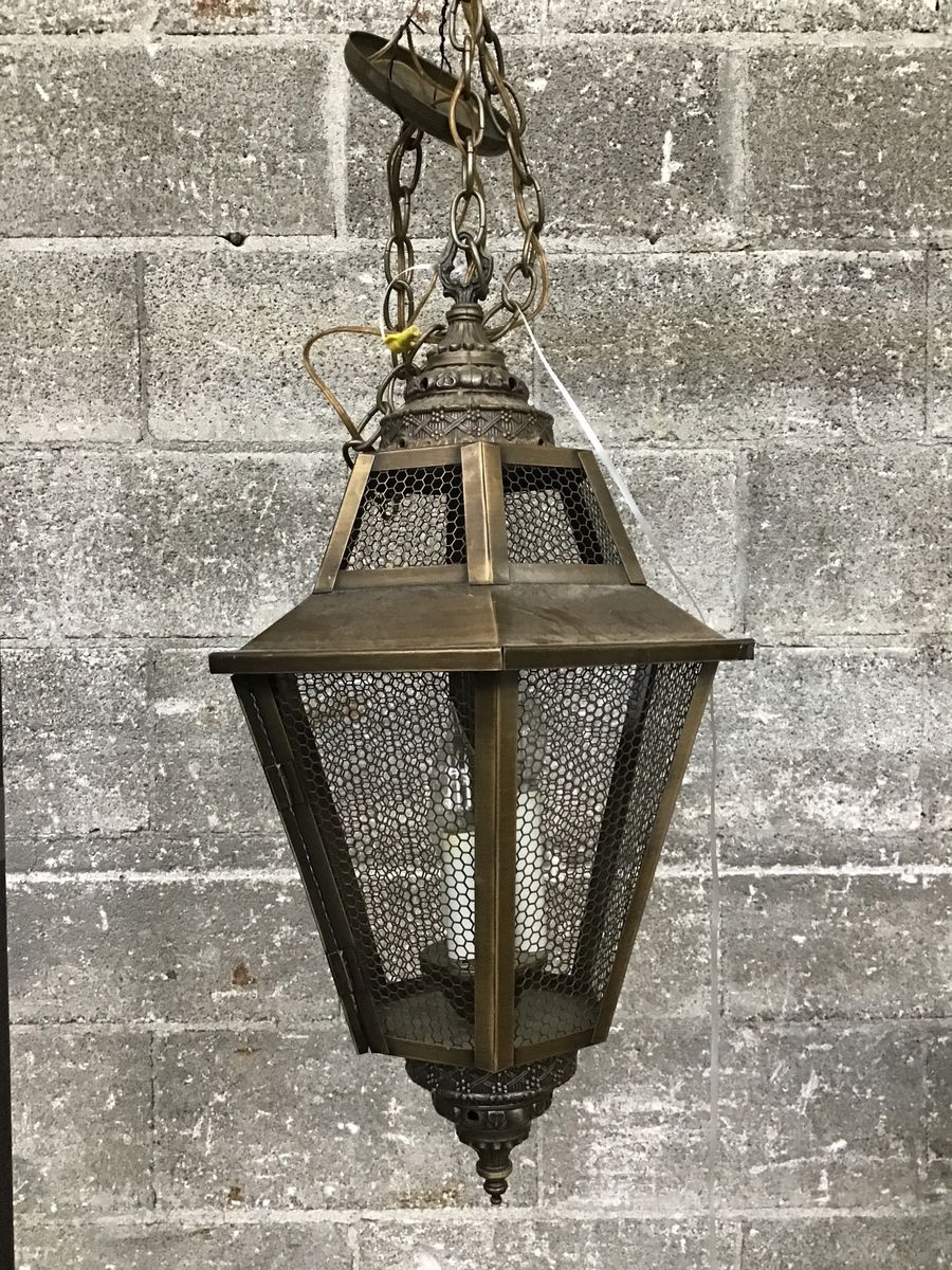 Brushed antiqued brass lantern with honeycomb screens, has a very distinctive look.