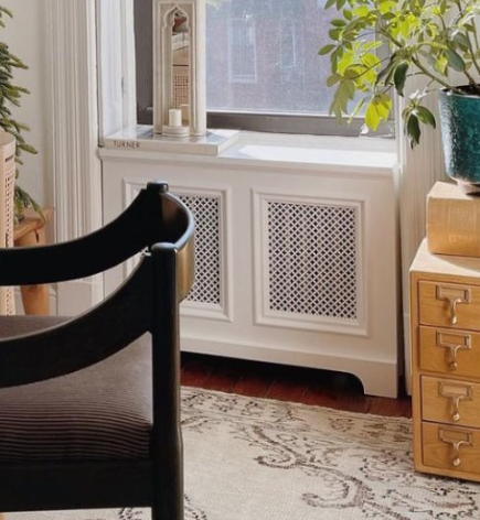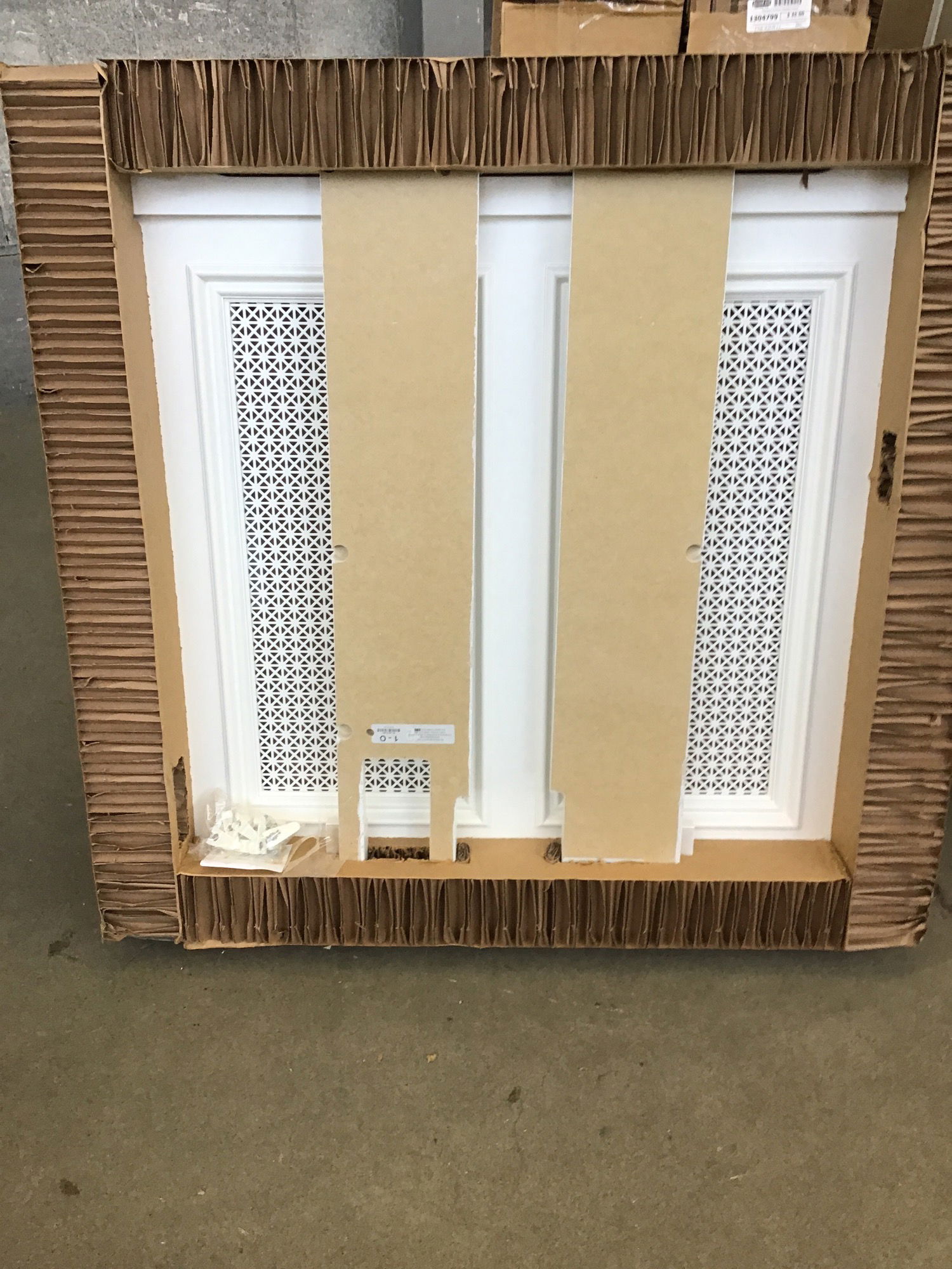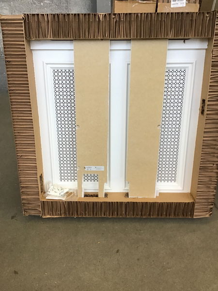 This Fichman Furniture 'Back Bay' radiator cover was custom ordered for its previous owner and has a metal screen. Don't have radiators? Use it as a plant stand! Assembly required but all parts are included. Second photo is an example of what it looks assembled (may be a different size). Dimensions are approximate.