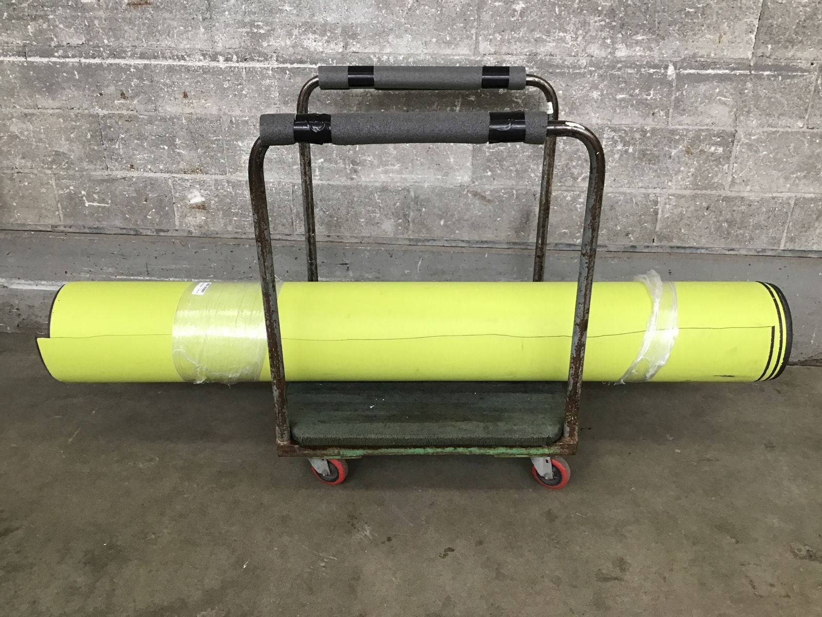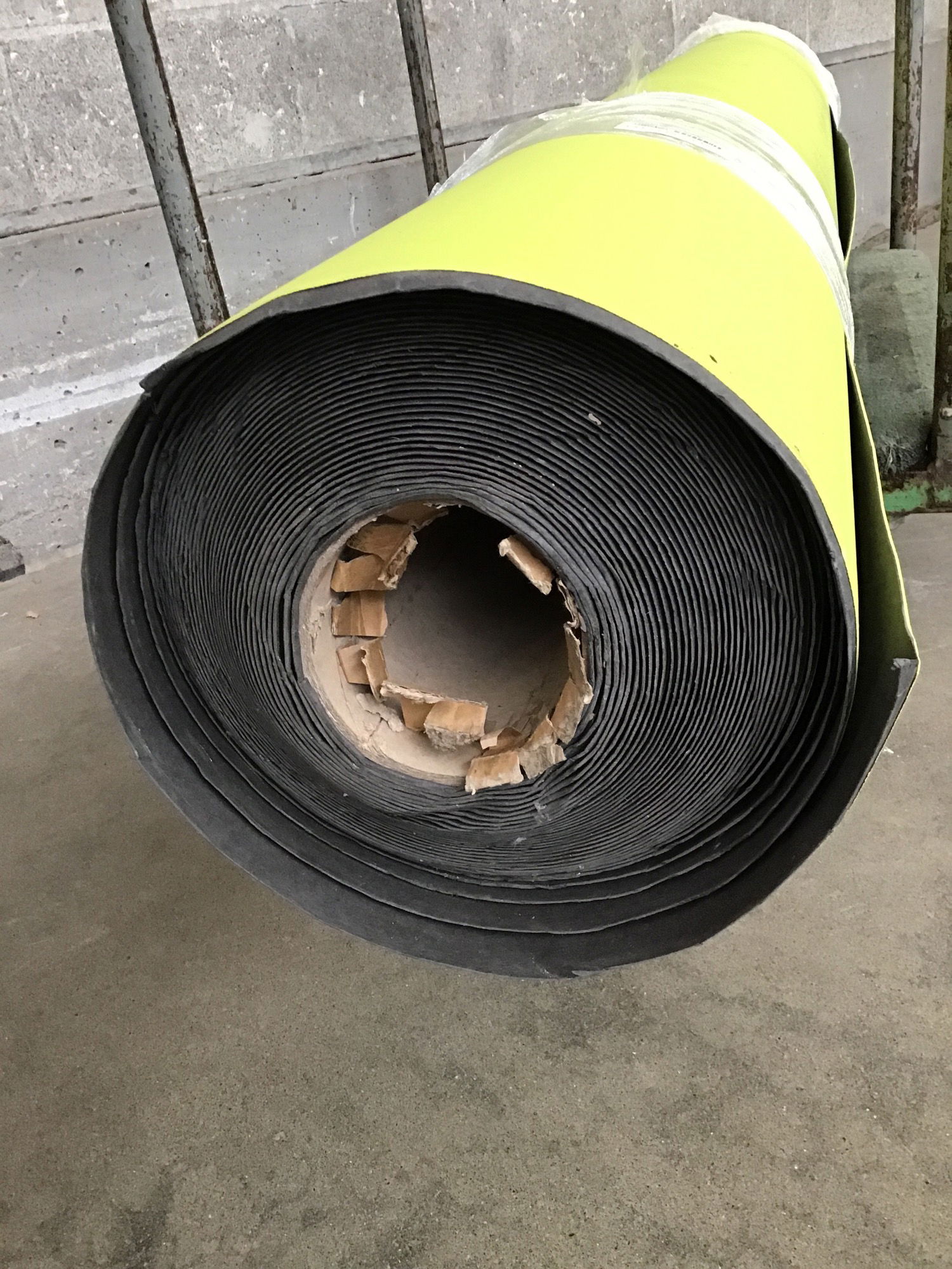 Huge 81' x 6-1/2' roll of furniture linoleum from Marmoleum, in an absolutely excellent shade of chartreuse. This is a versatile surfacing material that can be used on cabinets, doors, tabletops, and the like. Give a long-lasting pop of color to your drawer faces or desktop! 530sf total, retails new for $3.25/sf. Specs here.