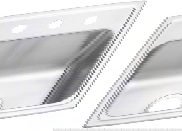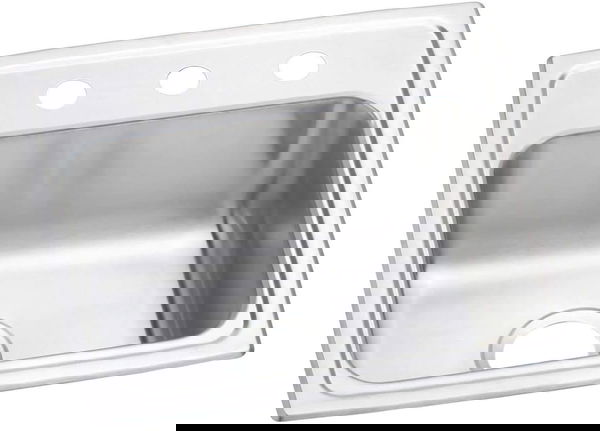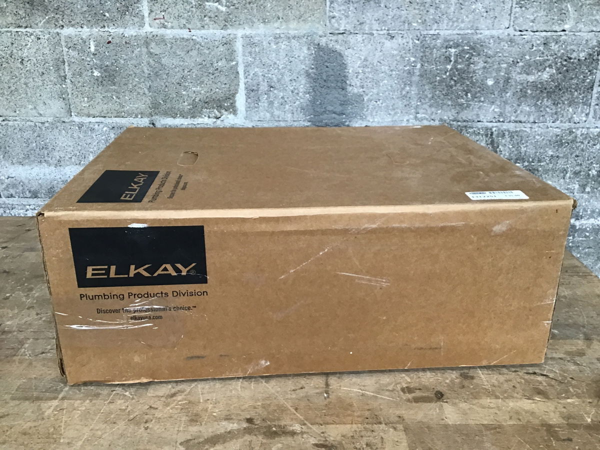New in-box Elkay stainless sink from their "Celebrity" line. Model PSR19183. Three holes for faucet and handles, 8" centers.