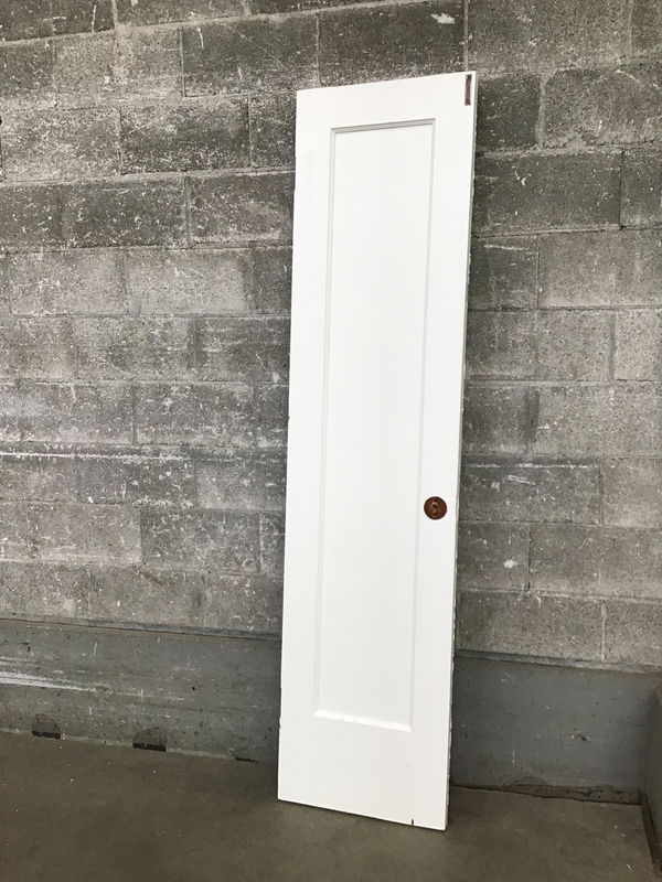 Painted mahogany, recessed one panel interior door that's been cut down a little from the usual 20" door.