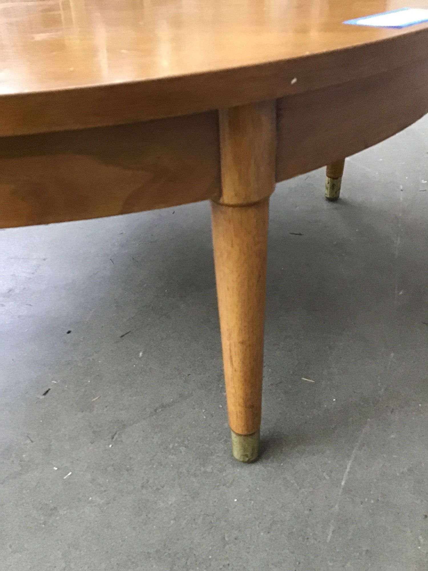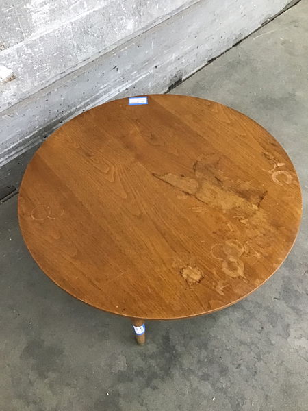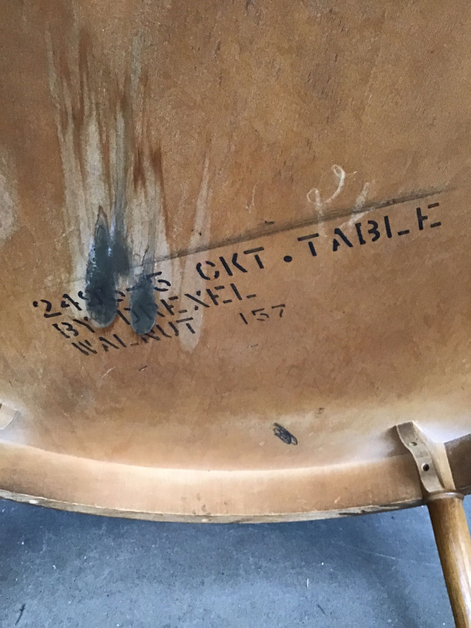 Ca. 1950's or '60's marked "2495-5 By Drexel Ckt. Table Walnut 157" that looks a lot like the Drexel "Declaration" model, but there are some differences. The table is structurally sound, but shows plenty of signs of half full booze glasses left on the top and few other bits of cosmetic wear from use. Price reflects condition.
