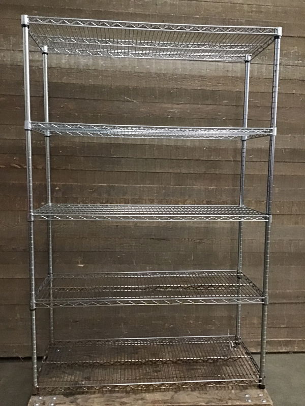 Metro racking with no caster wheels. Has holes to screw some in or to use as a stationary shelf. Has a lil' rust.