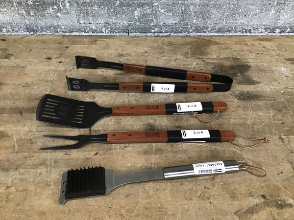 A set of 4 grilling tools by Gorilla Gear. These tools look to be well made and are best used for BBQ grilling.