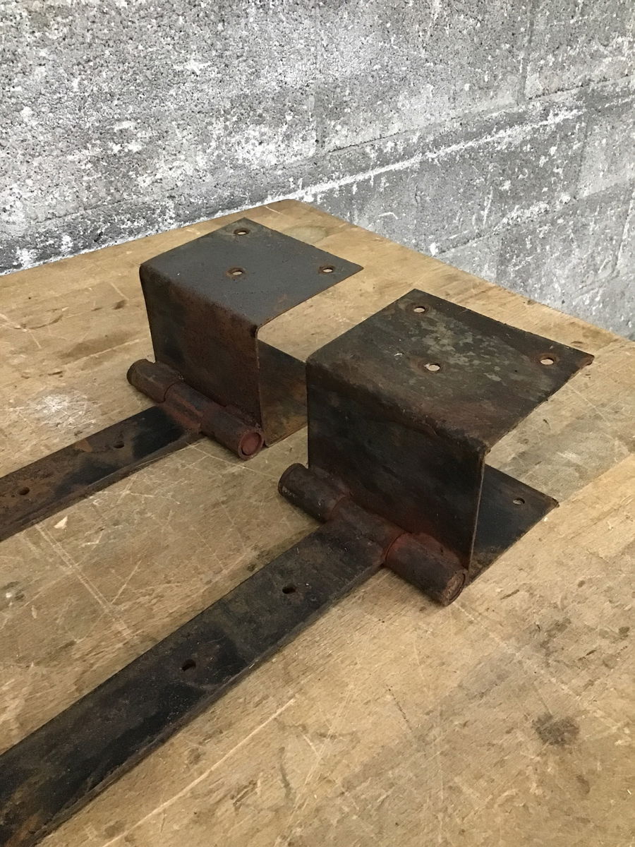 Two hinges for a wood gate that uses a 4x post on the hinge side. The 1 1/2" wide strap mounts to the 36" wide gate. Item may have cosmetic damage. Photo may be representational.