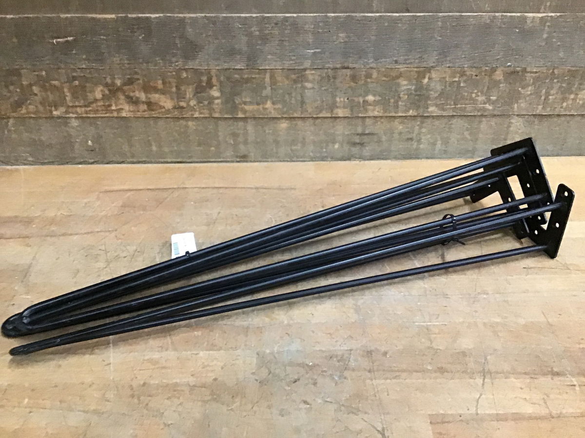 Black painted steel hairpin table legs. Not as heavy duty as some of the custom options we have in stock but still would make a great base for your own custom top.