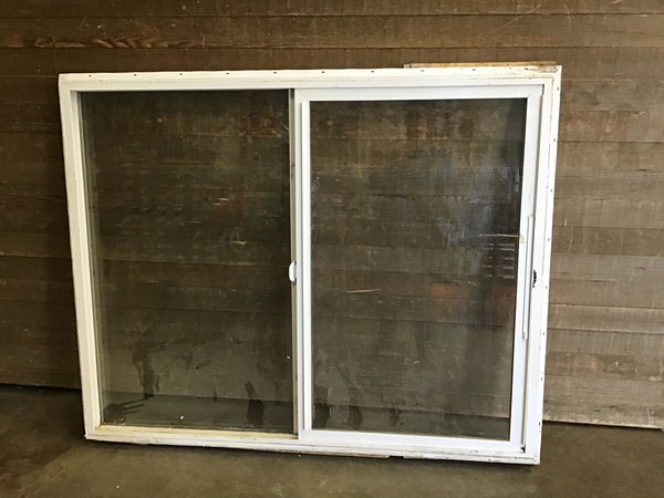 Vinyl slider Milgard window in good, used condition. Comes with nailing fins. Could use a good clean before installation, but mechanisms work and seals appear to be good.