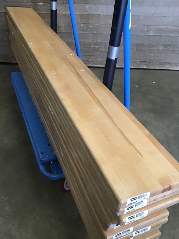 Relatively clean, clear finished joined maple bench top from a middle school locker room. Good amount of material with endless possibilities. Even has some of that authentic locker room gum here and there (don't worry, we won't charge extra for that).