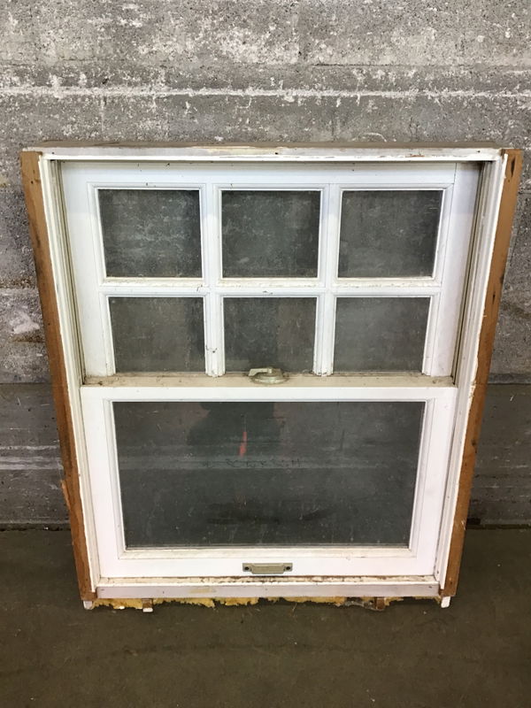 Wood thermopane single hung window with faux divided top sash. Would make a top notch shed window.