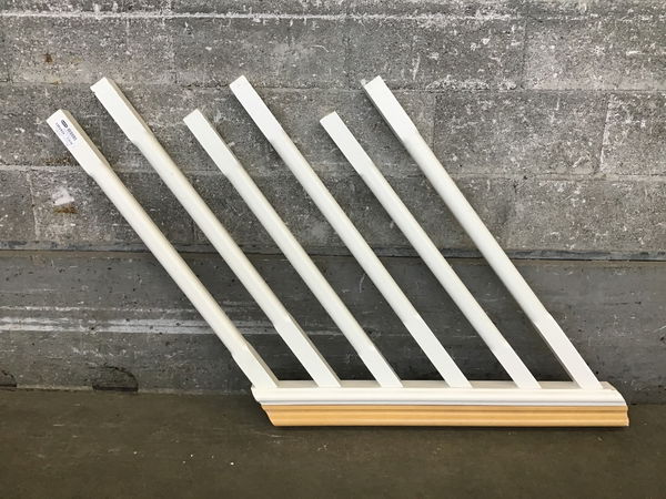 Short angled run of interior stair railing with 6 spindles and a Maple breadloaf top rail.