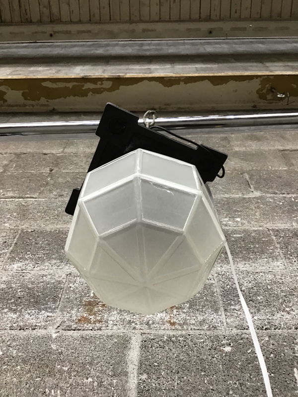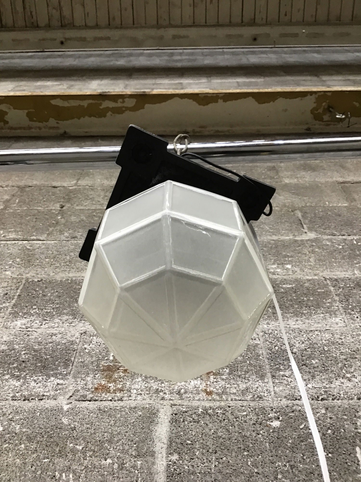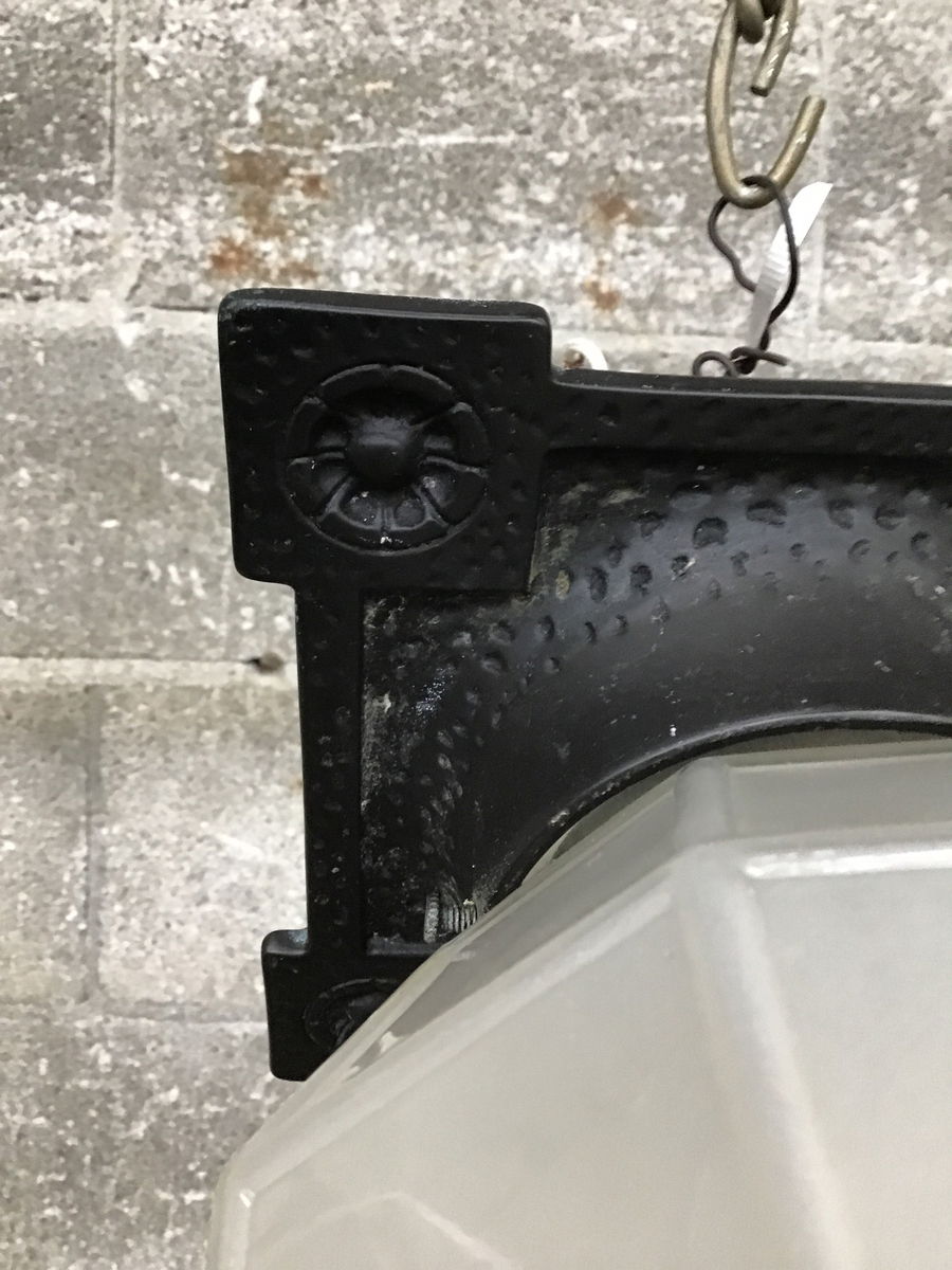 Very cool Craftsman-style porch light from Rejuvenation with a flawless octagonal prism shade and an ornate cast iron base.