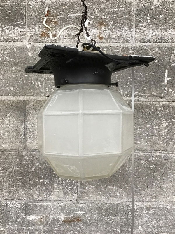 Very cool Craftsman-style porch light from Rejuvenation with a flawless octagonal prism shade and an ornate cast iron base.
