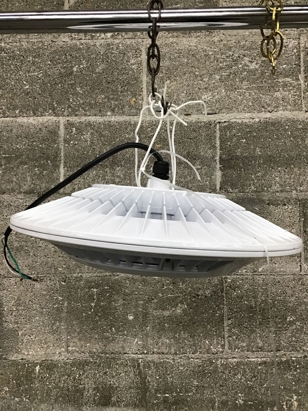 Massively bright and easy to install (runs on 120V) RAB 'CLED52' industrial grade shop light. Tested in house and is very functional.