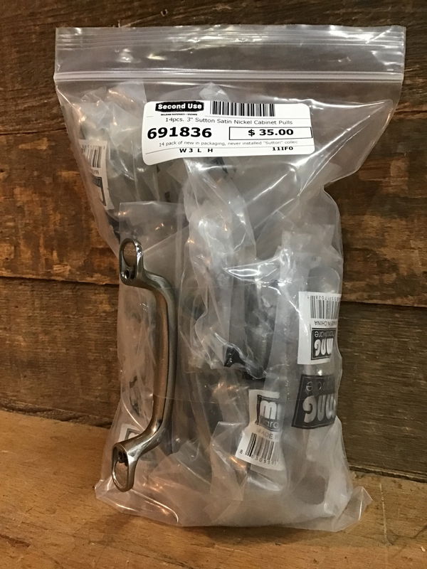 14 pack of new in packaging, never installed "Sutton" collection pulls by MNG Hardware. 3" wide center to center mounting holes and with a premium satin nickel finish, these pulls are sure to revamp your cabinet or other furniture. More info on these here!!